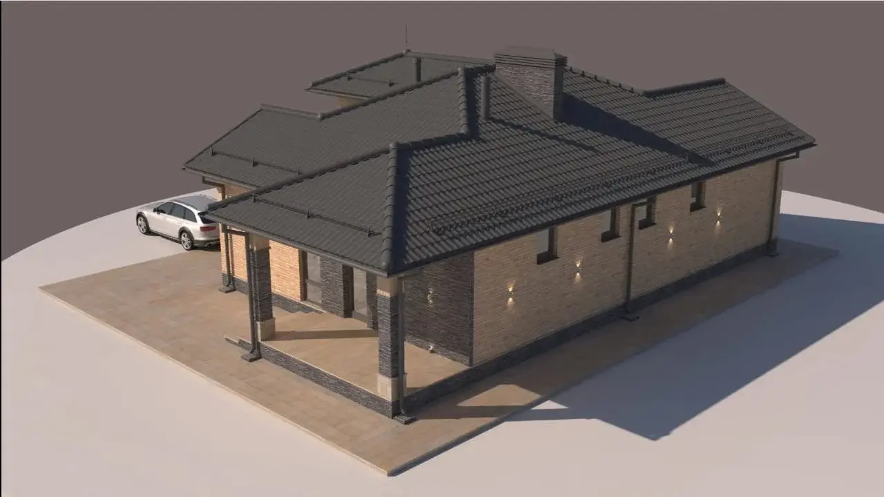 Представляем вашему вниманию элегантный одноэтажный дом от строительной компании СК «Тандем» — идеальное воплощение современного загородного жилья, где гармонично сочетаются функциональность, эстетика и качество.Лаконичные линии фасада, комбинированный декор (кирпичная кладка внизу и светлый штукатурный верх), а также натуральная деревянная облицовка вокруг входа создают уютную и тёплую атмосферу. Крыша из прочной металлочерепицы придаёт дому солидный и долговечный вид.Каждый элемент этого дома — от фундамента до крыши — построен с соблюдением всех норм и стандартов. Компания «Тандем» гарантирует не только красивый внешний вид, но и долговечность, безопасность и энергоэффективность.